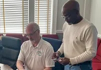 Pictured: Johnny Burrell (right) shows pictures of the damage caused when a vehicle struck his home back in December during a recent Rome Public Works Committee meeting