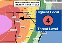 That includes a moderate risk (4 out of 5) for tornadoes, some of which could be strong.