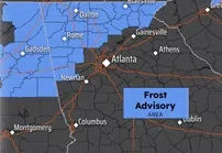 A Frost Advisory is in effect from 2 a.m. until 9 a.m. Sunday for Floyd, Bartow, Chattooga, Gordon, Polk, and Paulding Counties.