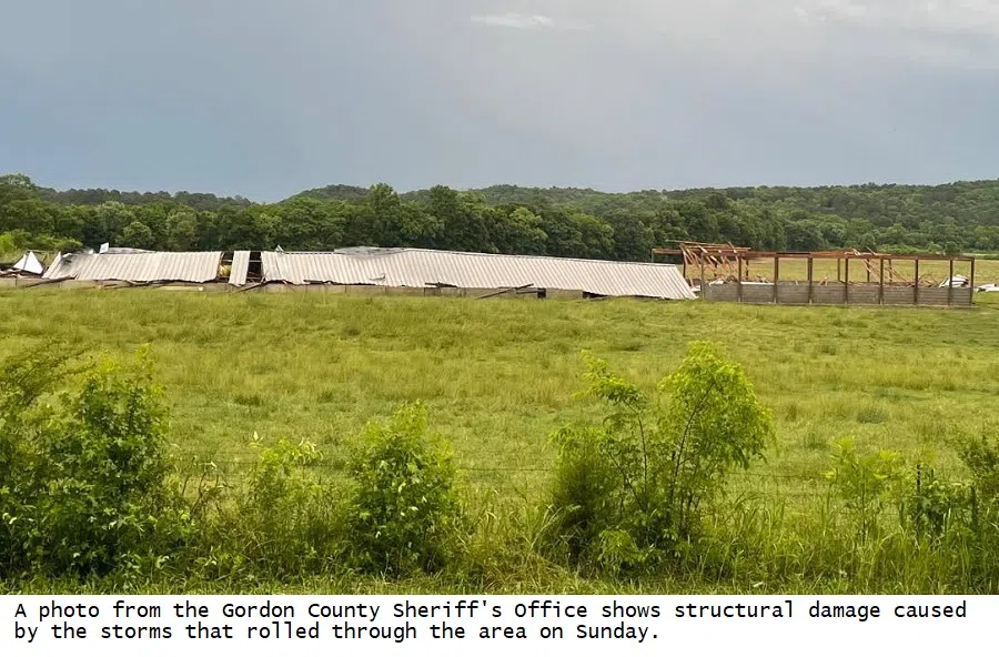 Gordon County Sheriff Mitch Ralston reported significant structural damage has been reported to farm buildings in and about the Oostanaula community.