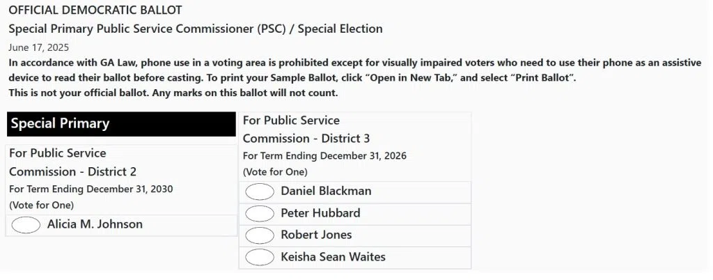 On the Democratic ballot, the candidates for District Three are Daniel Blackman, Peter Hubbard, Robert Jones, and Keisha Sean Waites.