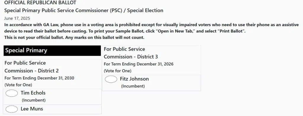 Advance voting is underway in special primary elections for a couple of seats on the Georgia Public Service Commission.