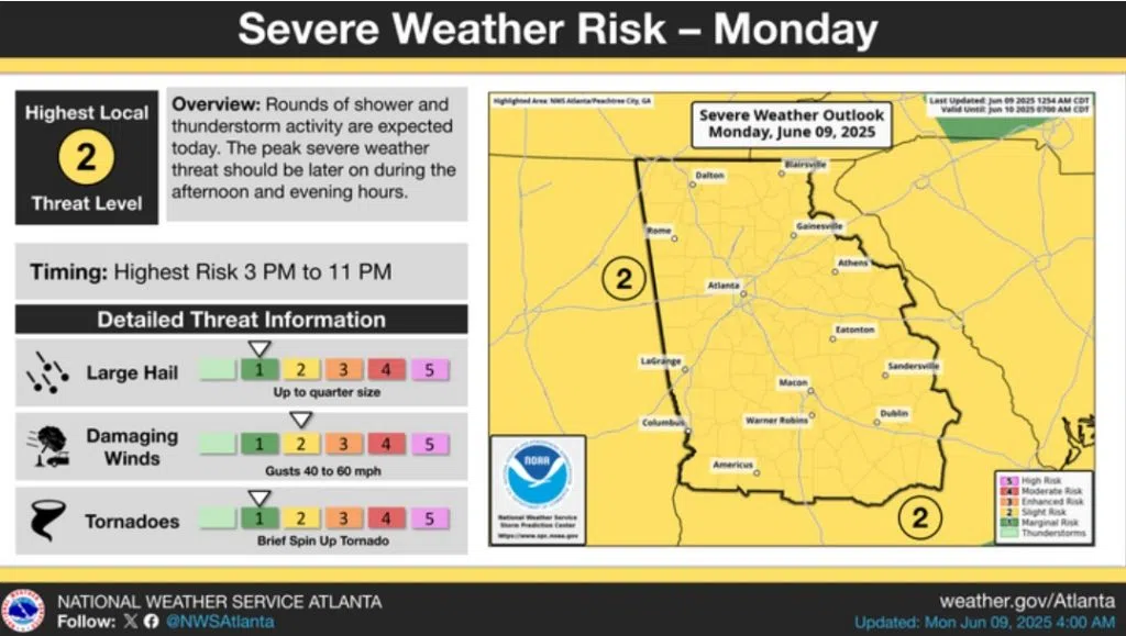Level 2 Severe Weather Risk for Monday