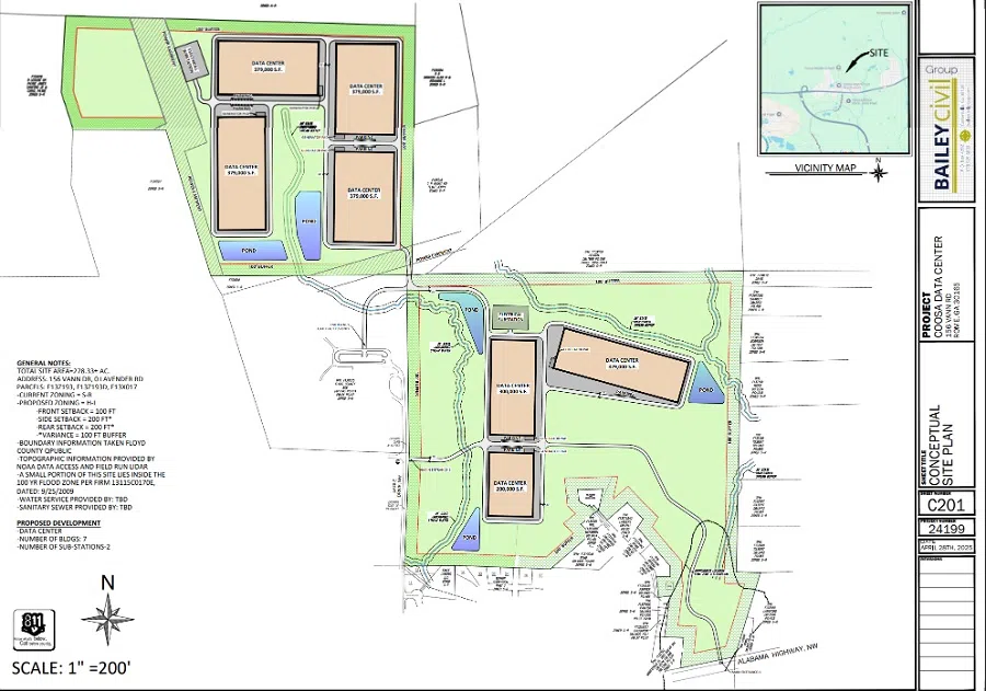 The Floyd County Commission is expected to vote on a rezoning request for a new data center near Coosa High School when it meets Tuesday.