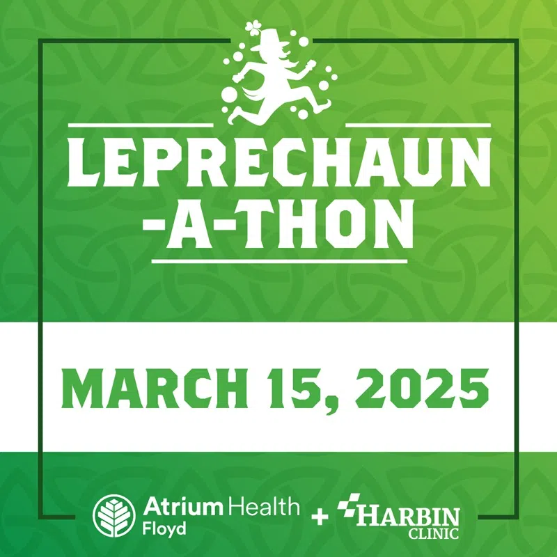 Due to the potential for severe weather on the evening of Saturday, March 15, the start time for the Leprechaun-a-thon sponsored by Atrium Health Floyd and Harbin Clinic has been changed.