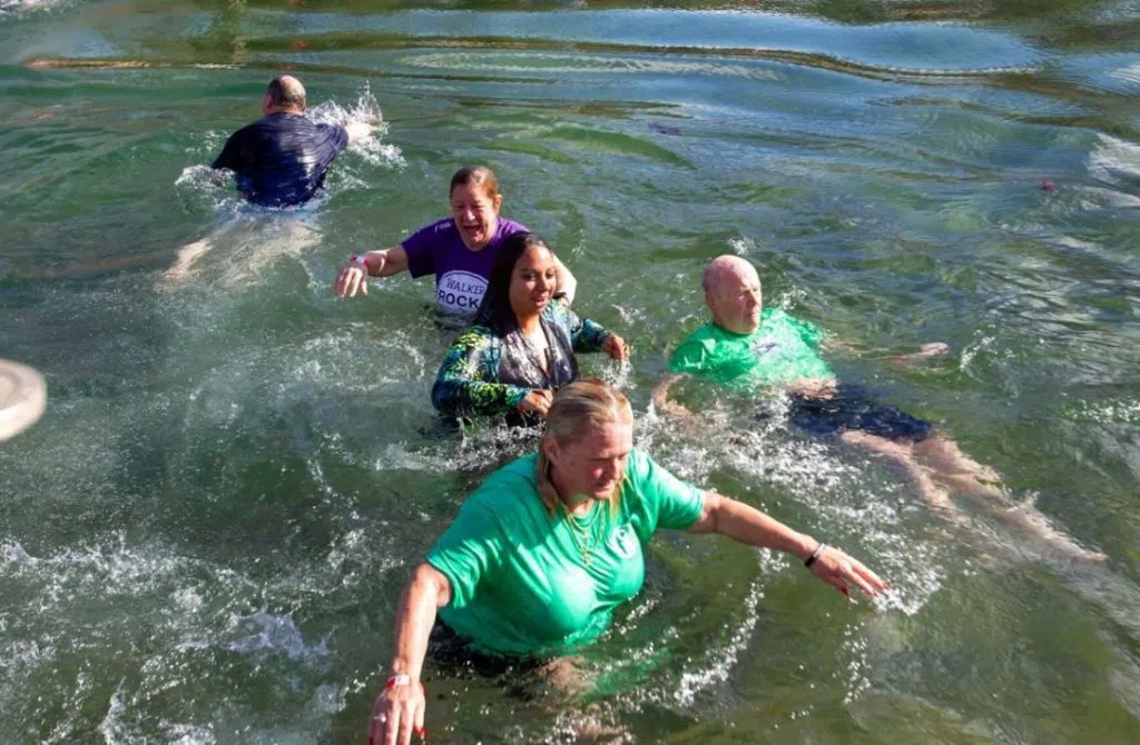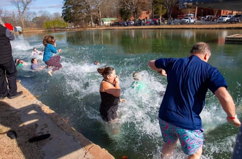Over 100 people in the Cave Spring Polar Plunge celebrated the first day of 2025 by jumping into the frigid water at Rolater Park. The event raised $4,200 for the Cave Spring Historical Society.