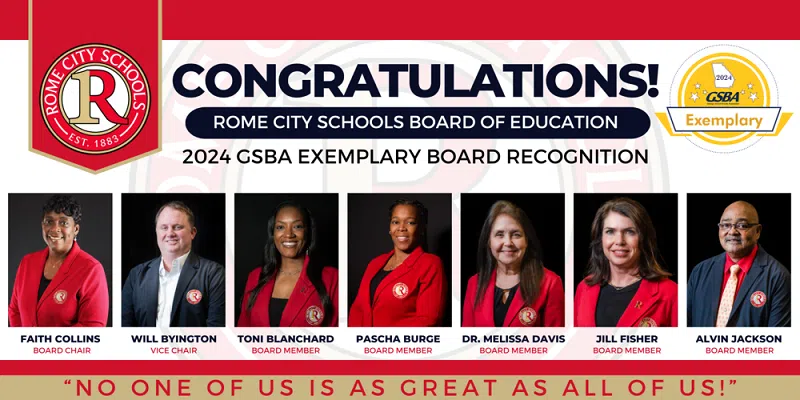 Rome City Schools Board of Education has been named an Exemplary School Board for 2024 by the Georgia School Boards Association (GSBA).