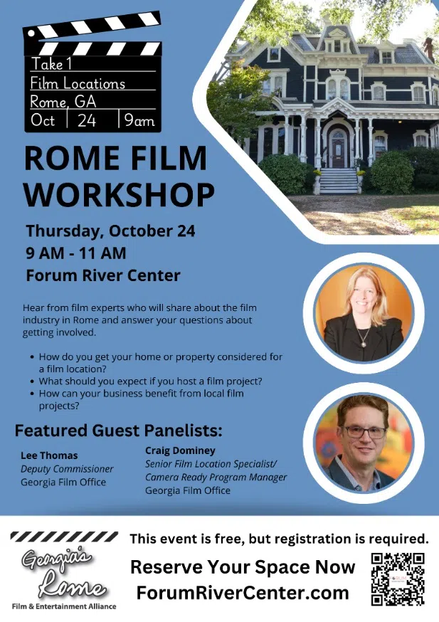“We are excited to welcome experts from the Georgia Film Office who are responsible for bringing huge productions to our state,” said Missy Kendrick, President of the Rome/Floyd County Development Authority. “Their knowledge and experience will provide invaluable guidance on how property and business owners can position themselves to benefit from this thriving industry.”