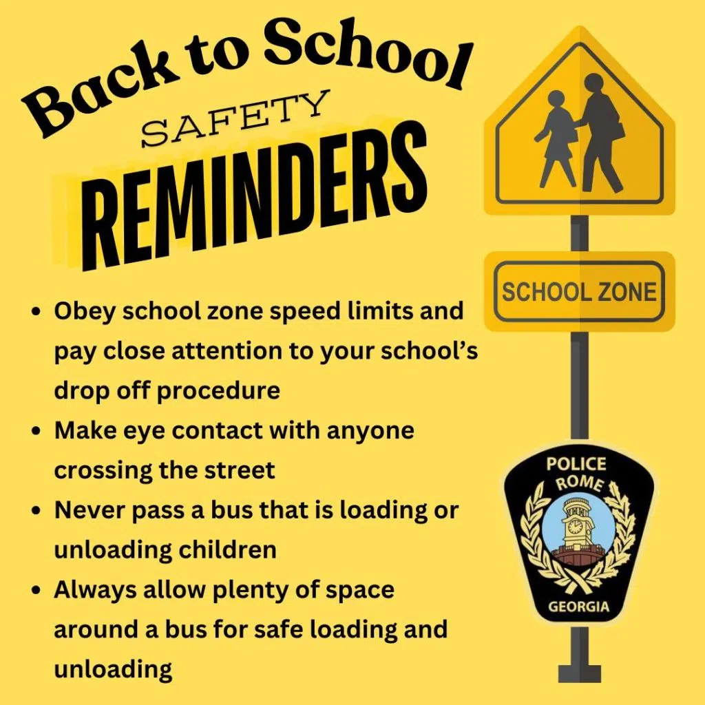 The Rome Police Department reminds motorists that all vehicles traveling in both directions must stop when a school bus has its signals in operation.