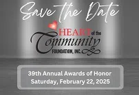 Wednesday, September 18, 2024–11:45 a.m.-News Release-The Heart of the Community Foundation Board of Governors is seeking nominations for the 2025 Heart of the Community Awards of Honor. The awa...